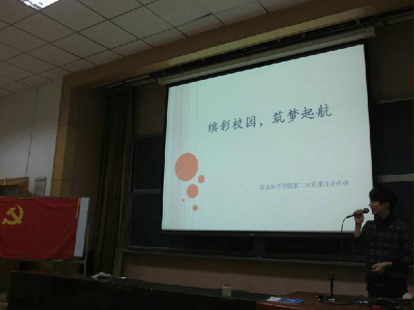 2013年12月26日(周四)晚7点,信息科学学院第二次党课讨论活动在主南102举行,信科院11级党支部副书记陈喆带领13级的本科新生党员和入党积极分子展开激烈的讨论。