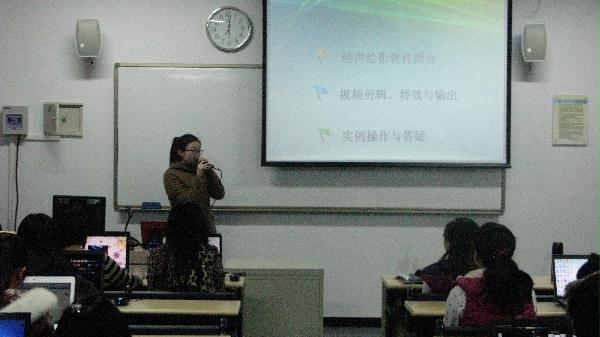 2014年3月16日下午6:00,信息科学学院团总支学生会“我为技术狂”系列培训之会声会影X5专场在主南103教室顺利开展,本次培训由技术中心主任陆欣圆亲自担任主讲嘉宾,培训内容主要是对会声会影X5基础功能的讲解。由于近期的“微电影大赛”在校园的风靡,同学们纷纷前来参加培训,为自己的视频处理提供强大的技术后援。