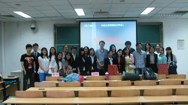2014年5月13日晚七点,由北京语言大学信息科学学院团总支学生会主办的“风云信科人——校友系列经验分享会”在主楼501成功举办。00级计算机系陈申、08级信管系鞠萍、09级计算机系刘畅以及09级数媒系谭震应邀担任此次讲座嘉宾。