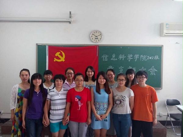 2014年7月4日,北京语言大学信息科学学院2012级党支部发展党员大会在主南318如期举行。到会的党员有信科院2012级党支部书记张弛同志、副书记张骁腾同志、党员骆欢庆同志、王心俨同志、蒲慧佳同志、预备党员梁媛同志。会议拟接收朴太晶、李桐语、田悦、杜鹏丽、冯钰坤、陈安琪等六名先进同志成为中国共产党预备党员,预备期为一年。