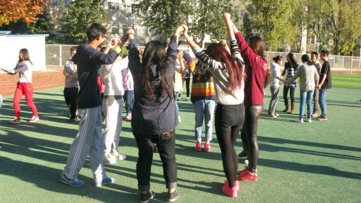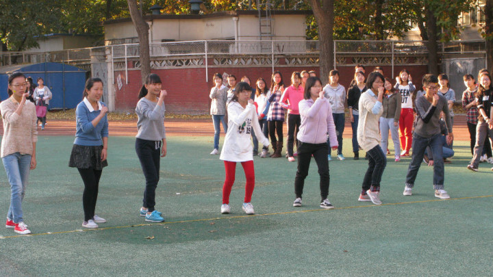 图一:体育部部长包宇宁带领全体成员慢跑热身