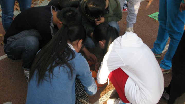 本次素质拓展由信息科学学院第十五届团总支学生会实践部部长刘博以及实践部干事赵雪羽担任主持人,在进行了基础的热身运动后,一系列精彩有趣的活动陆续开展。首先,在破冰游戏“we will rock you”的节奏中,各部门干事通过简单的游戏逐渐熟悉起来。随后,主持人将全部参与者分为四个小组,并以小组为单位进行之后的游戏。本次素质拓展比拼围绕着“刷刷朋友圈”、“hold me in the dark”、“你也蛮拼的”、“吉祥三宝”四个拓展项目顺利开展,每个小组的同学都在为那枚象征集体荣誉的活动奖章而奋力拼搏,力争上游。在“hold me in the dark”游戏环节中,每组派出一半队员参赛,另一半队员站在场外保护。游戏准备环节,参赛队员站成一个圆圈,并面朝外侧闭眼,原地转三圈,根据主持人的指令,向前迈出步子。随后游戏正式开始,各组参赛队员根据事先讨论好的游戏策略,在不知晓周围具体环境的情况下,紧闭双眼小心摸索着寻找自己的同伴,哪一组在最短时间内聚齐全体成员则该组获胜。游戏既考验了队员们的判断能力、执行能力,又展现了成员之间的默契程度。