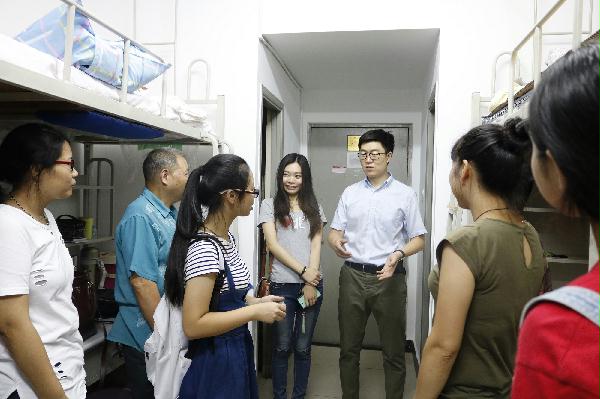 19:00,2016级辅导员陈飘老师和信息科学学院党总支副书记李超老师前往新生宿舍对新生进行了亲切的慰问。