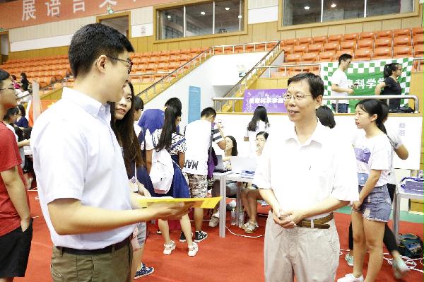 2016年8月24日,北京语言大学信息科学学院2016级新生在逸夫体育馆报到,并参与了游园会及新生家长会活动。信息科学学院第十七届团总支学生会全体成员协助学院办理了新生入学的各种手续。北京语言大学校长崔希亮、副书记刘伟、学生处处长黄展对2016级新生进行了亲切的慰问。