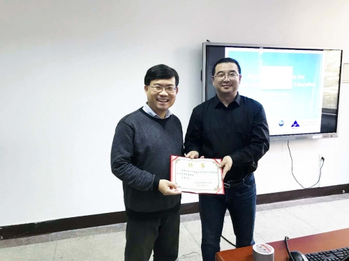 2018年12月20日下午,西安交通大学徐颂华教授受邀来访信科院,为学院师生作了题为《大数据智能与健康信息学》的学术报告。荀恩东院长代表学院为徐教授颁发了信科院客座教授聘用证书并赠送了纪念品。