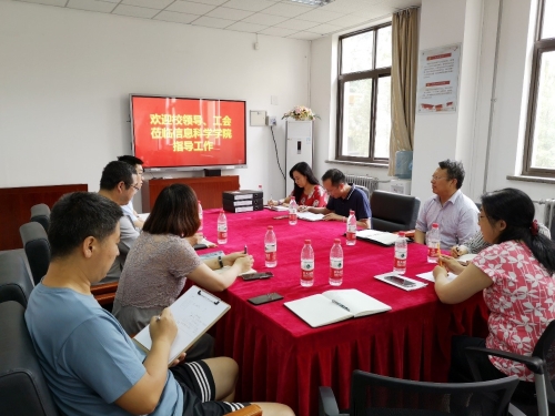 2019年5月30日下午,校党委马贵生副书记、校工会常务副主席曾东、副主席陈雪梅,工会由鑫老师一行,到信息科学学院调研二级工会工作开展情况和二级教代会相关工作。信息科学学院书记、工会主席李超、院长荀恩东、院文体委员会主任邵艳秋、二级教代会执委会代表、信管专业负责人赵慧周、工会委员刘鹏远、徐亦沛老师参加了调研。