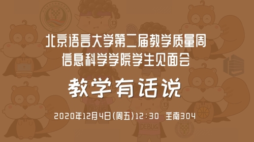 2020年12月4日中午12:30,北京语言大学第二届教学质量周活动“信息科学学院学生见面会”在主南304举行。
