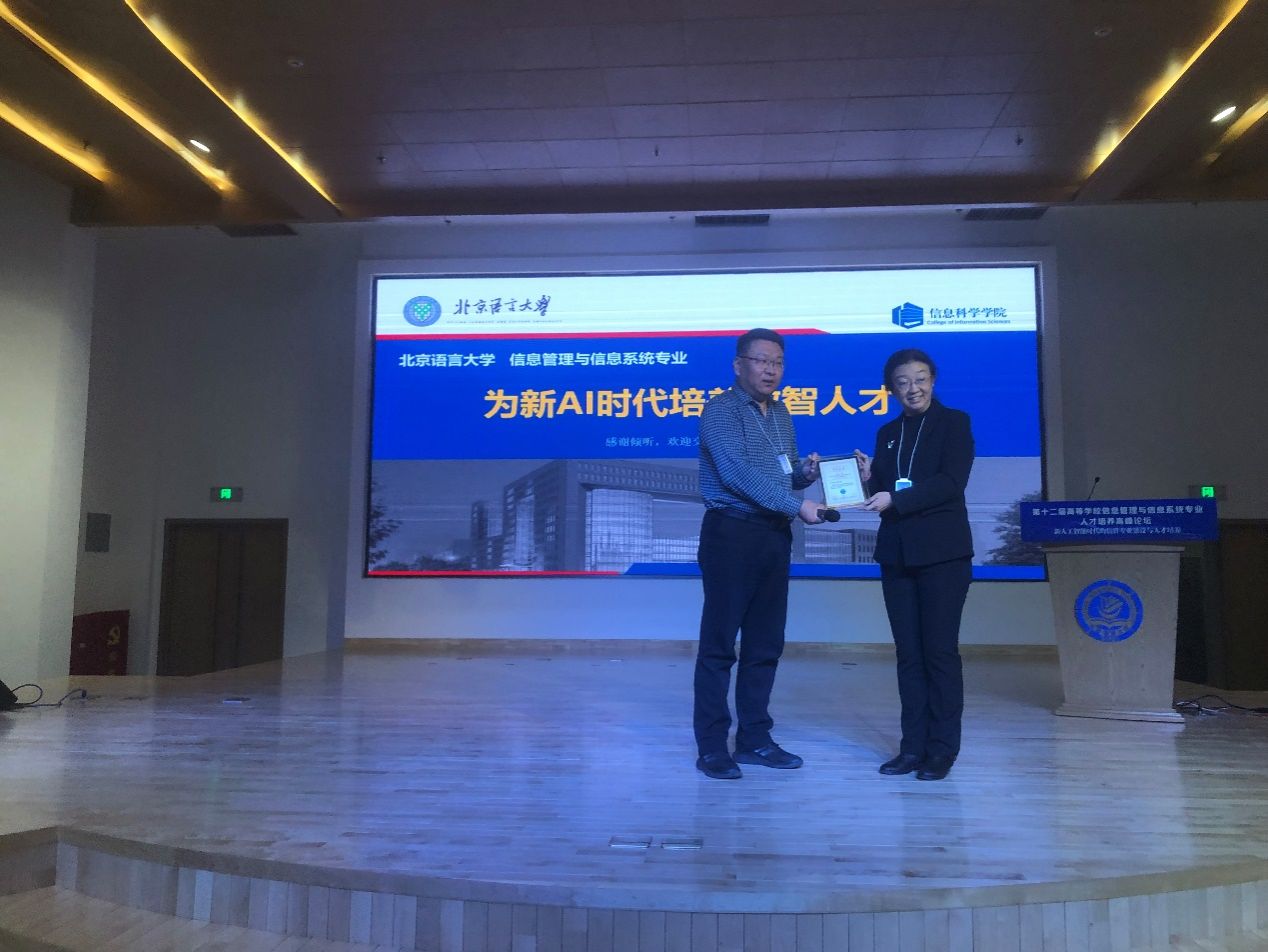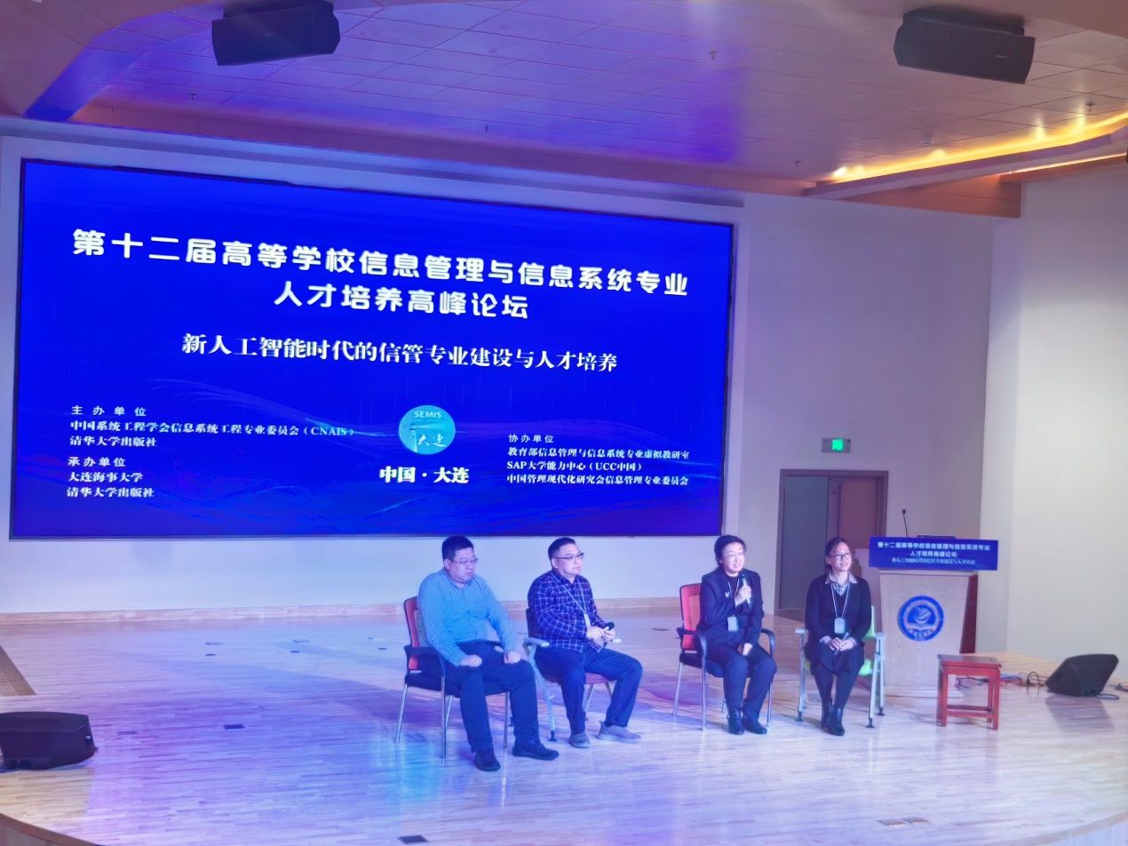 2023年11月11日,“第十二届高等学校信息管理与信息系统专业人才培养高峰论坛”在大连召开,来自高校和企业的100多位代表参加了本届论坛。受教育部信息管理与信息系统专业虚拟教研室邀请,信科院赵慧周老师在论坛上做题为“为新AI时代培养数智人才”的报告,分享我校信管专业建设经验。
