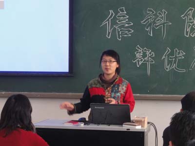 为全面贯彻党的十七大精神,落实“三个北京”青年行动计划,引导信科学院学生树立正确的世界观、人生观和价值观,努力成长为学有特色和全面发展的高素质人才,信科院团总支于11月5日中午12点40在主南318开展了2009—2010学年“三好学生”、“优秀学生干部”、“先进班集体”的答辩会。信科院党总支陈霞书记、副院长杨萍老师、教办李少芳老师、左英娟老师、学办李超老师、王昕老师及各班班主任和曾获北京市优秀班集体的08级信管2班班长08级鞠萍担任答辩会评委。